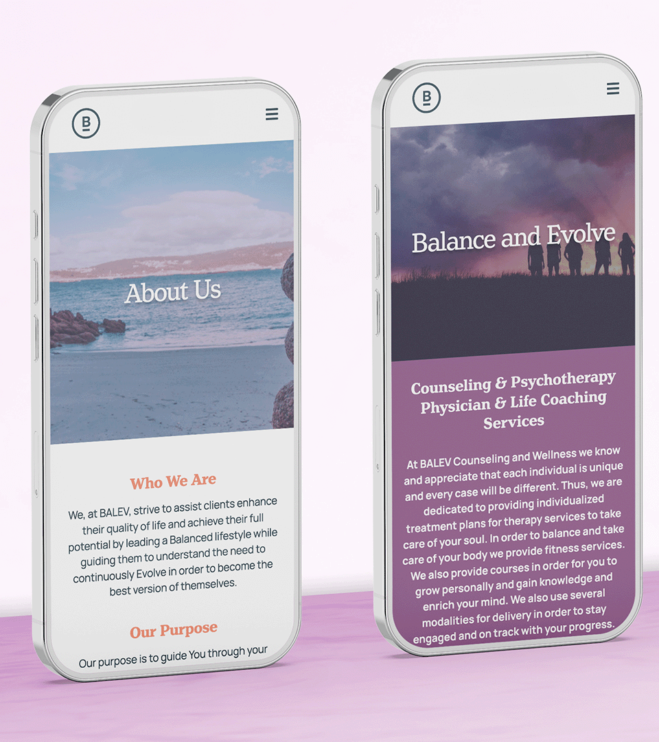 Balev is a mental health and wellness center that provides guidance in achieving a balanced lifestyle for both the mind and body. Their purpose is to guide individuals to heal and evolve with a focus on helping people cope with life’s most stressful moments.